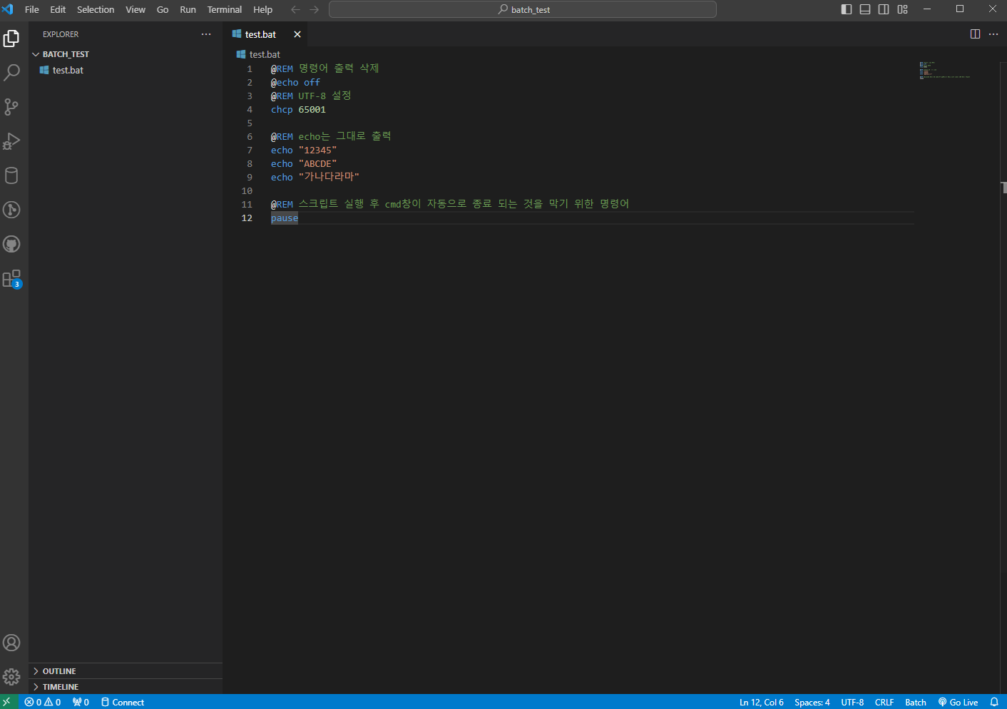 확장자명을 .bat로 하면 batch파일 생성 완료