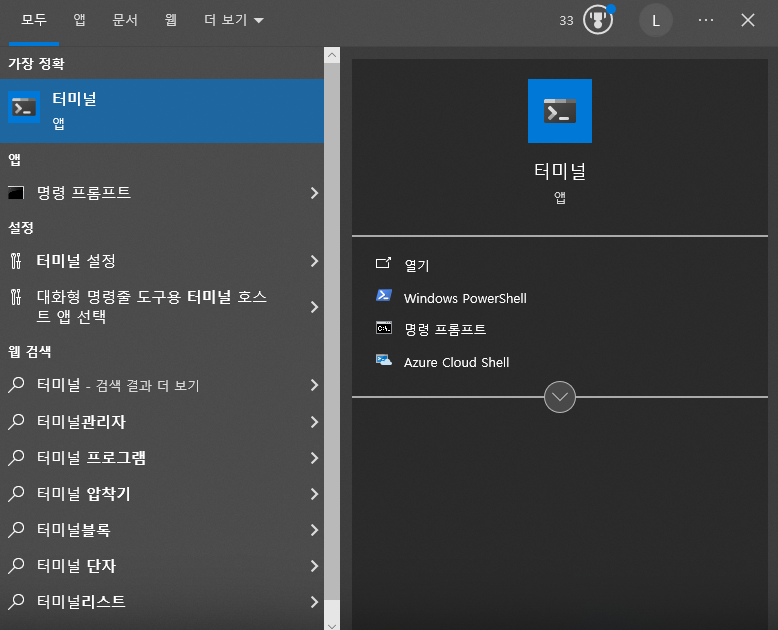 - Microsoft Store에서 'windows terminal' 검색