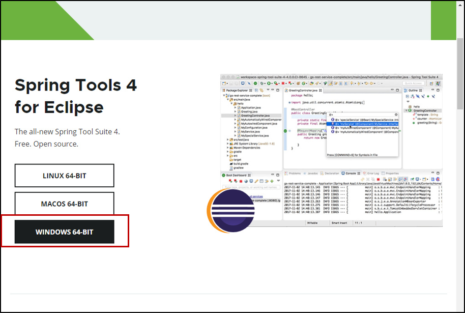 Spring Tools 4 다운로드 (자신의 컴퓨터 환경에 맞게 다운)