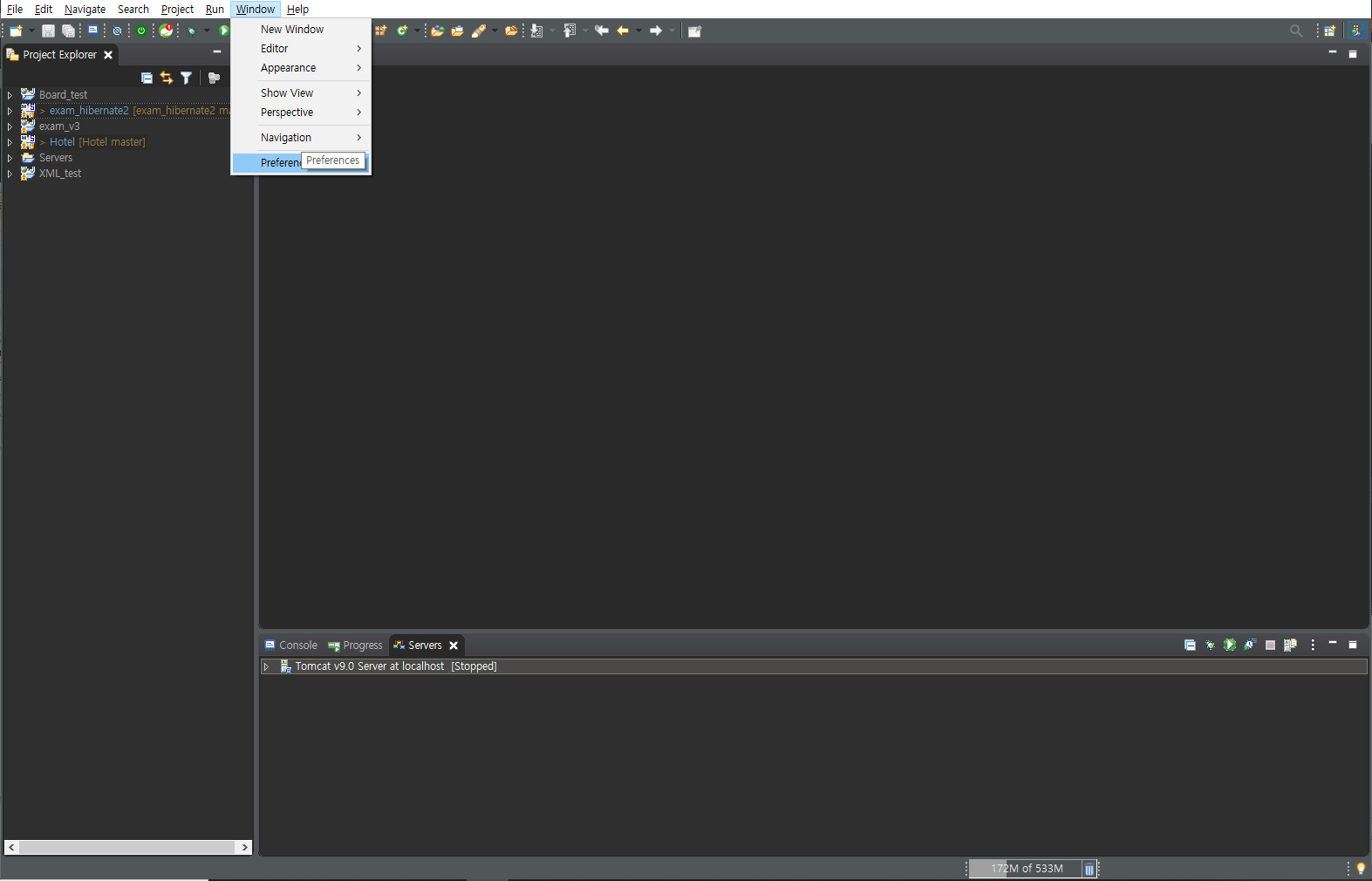 실행 실행 화면(나는 이미 몇개 진행한 폴더가 있어서 왼쪽 에 프로젝트 몇개가 있음 )