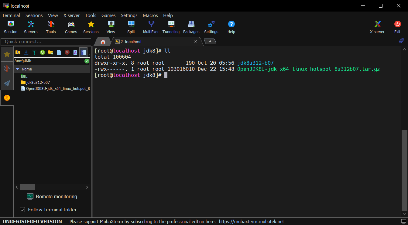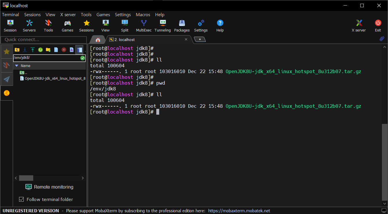 Linux에서 java 경로를 설정 후 다운받은 tar 파일을 이동
