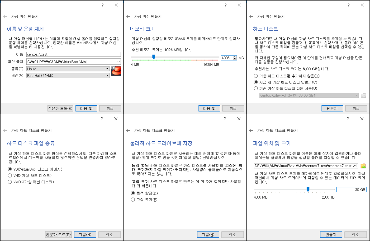 3. Virtual Box에서 vm생성 후 centos7 설치