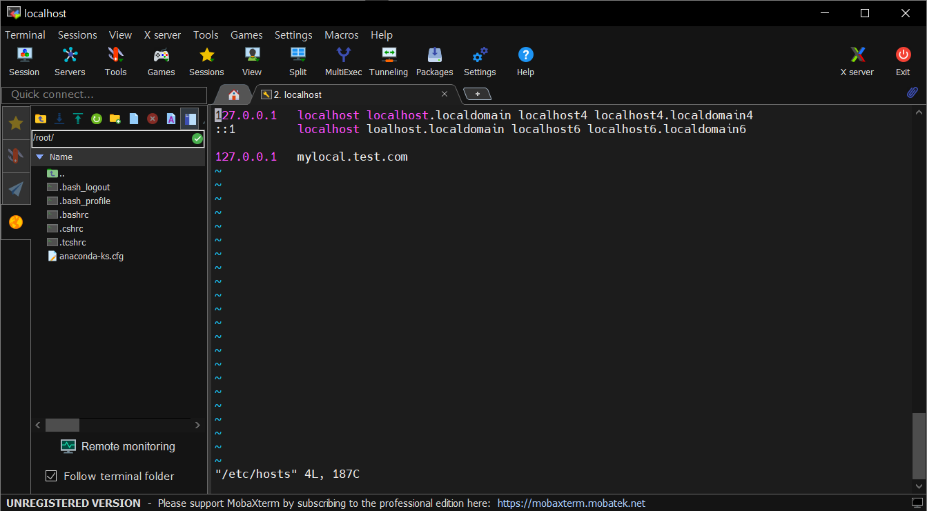 127.0.0.1 mylocal.test.com 을 추가 입력