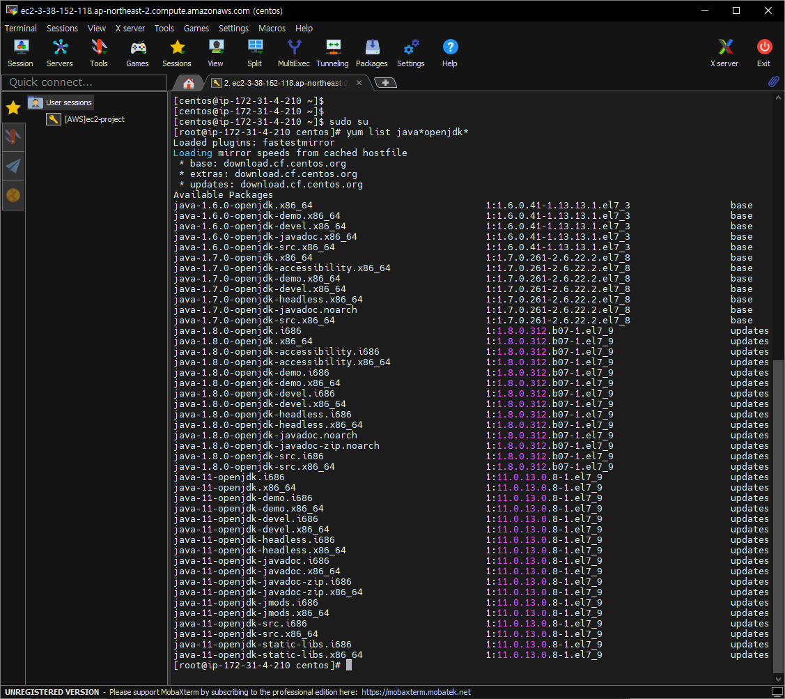 2. yum 명령어로 설치 가능한 jdk 리스트 확인