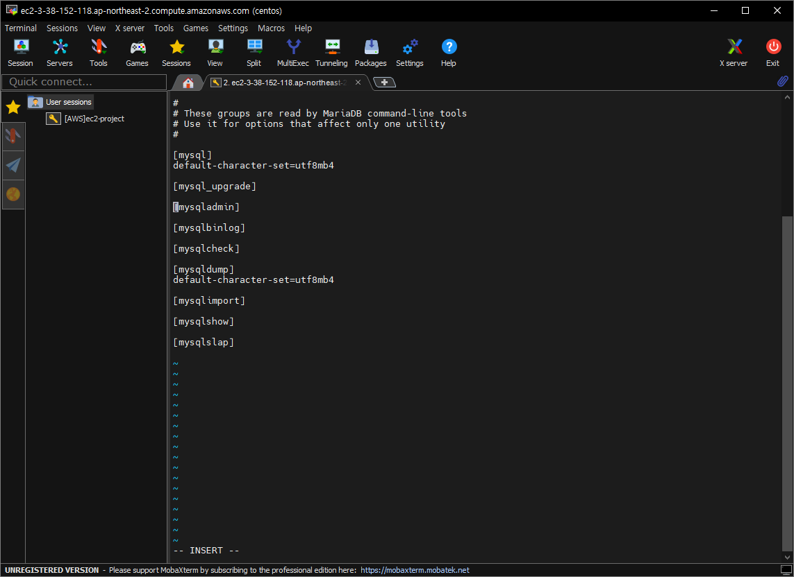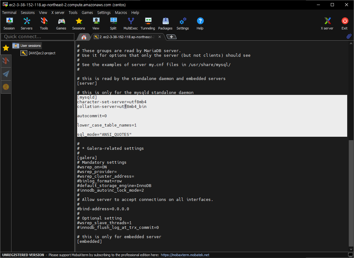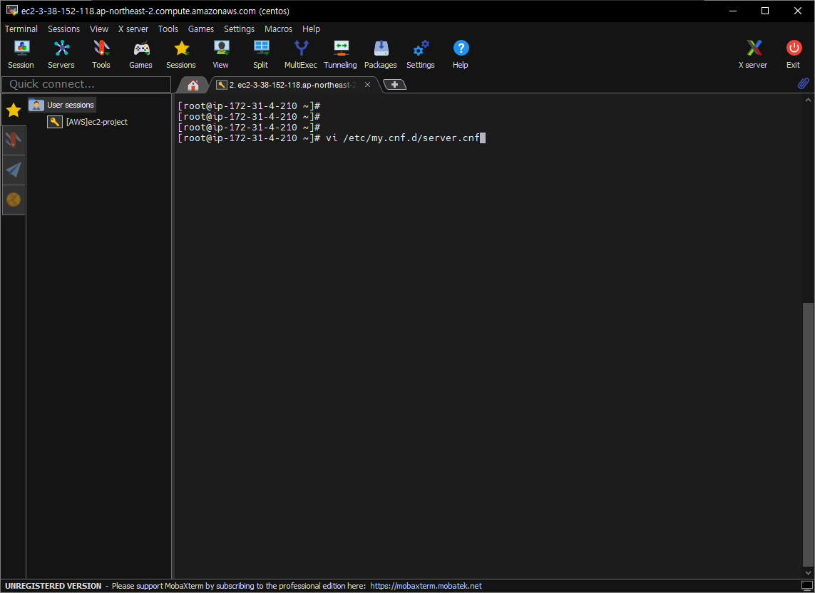 명령어 =====> vi /etc/my.cnf.d/server.cnf