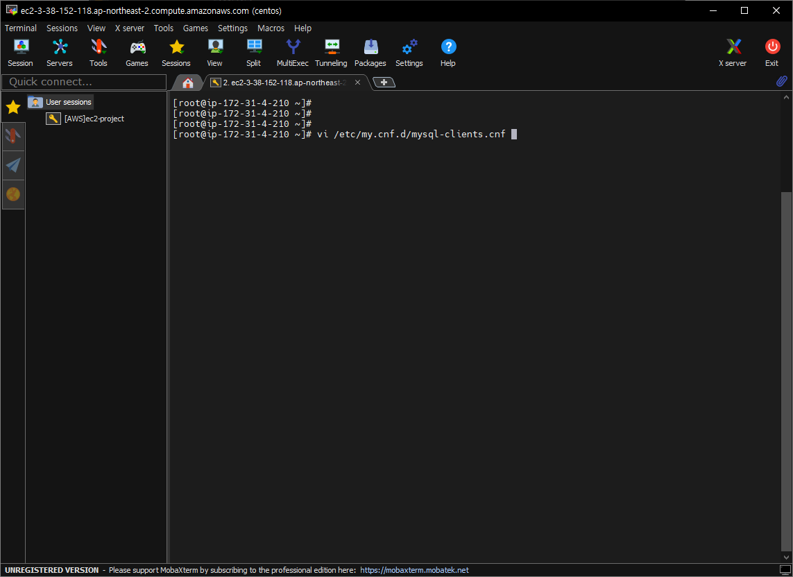 명령어 =====> vi /etc/my.cnf.d/mysql-clients.cnf