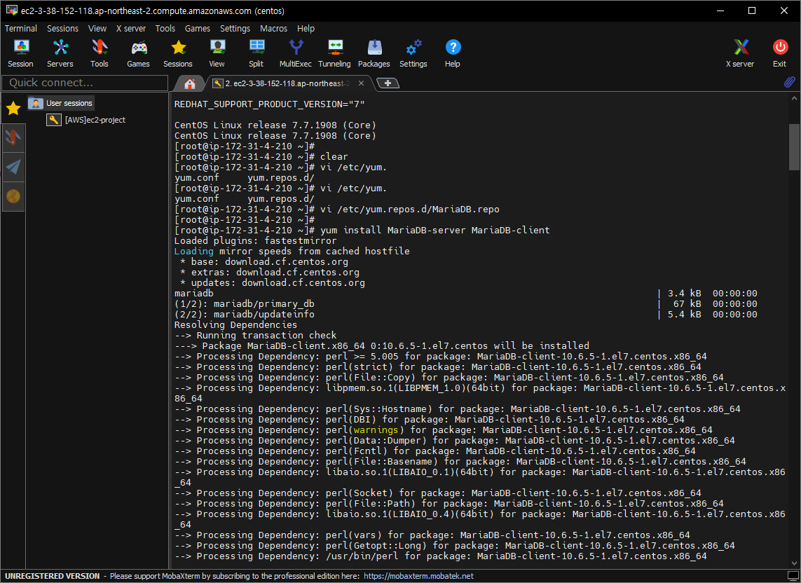 명령어 =====> yum install -y MariaDB-server MariaDB-client
