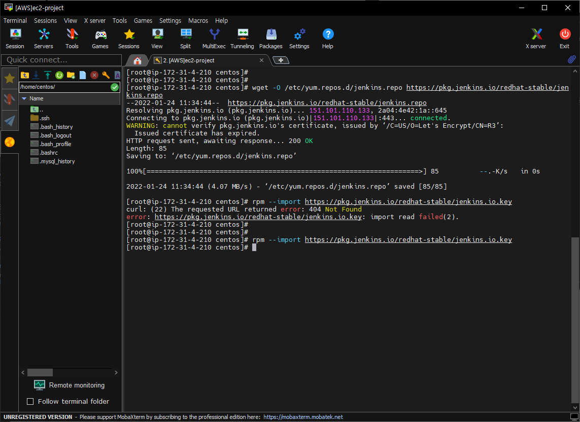 명령어 =====> rpm --import https://pkg.jenkins.io/redhat-stable/jenkins.io.key
