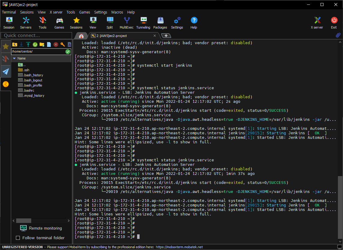 명령어(시작하기) =====> sudo systemctl start jenkins