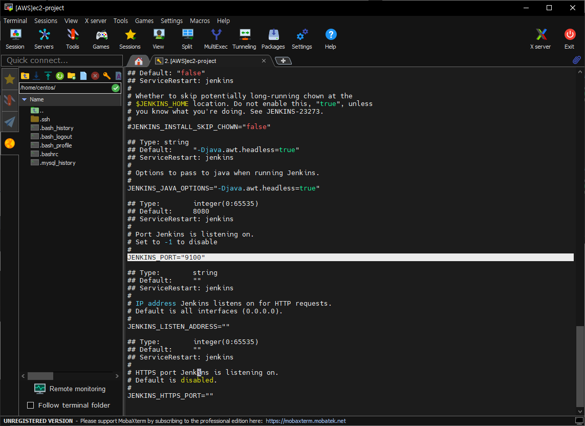 명령어 =====> vi /etc/sysconfig/jenkins 입력 후