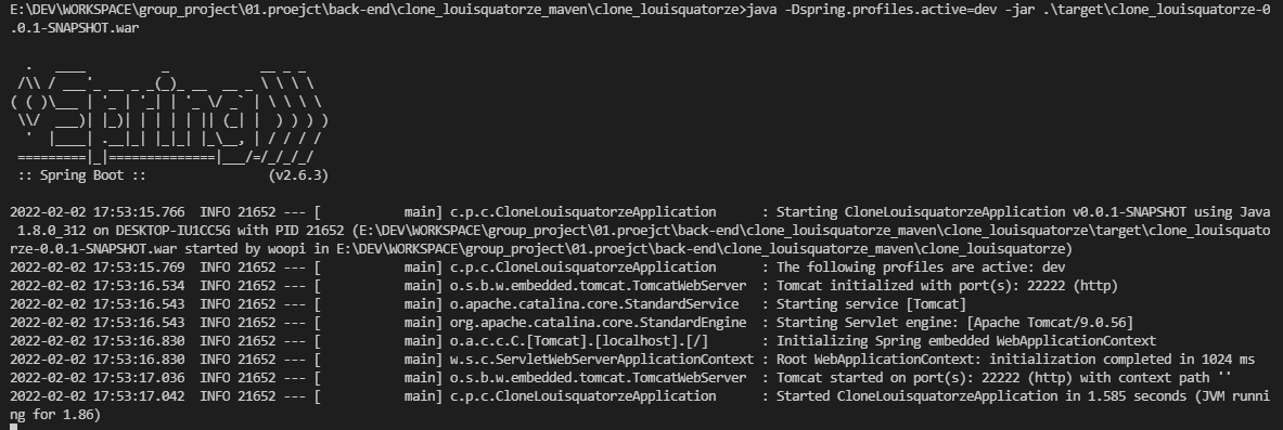 명령어 =====> java -Dspring.profiles.active=dev -jar ./target/{war파일 이름} 를 입력하면