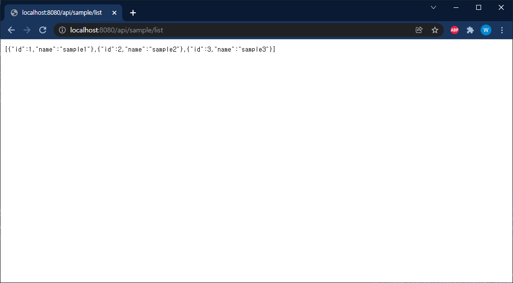 //Sample Entity의 전체 데이터 조회