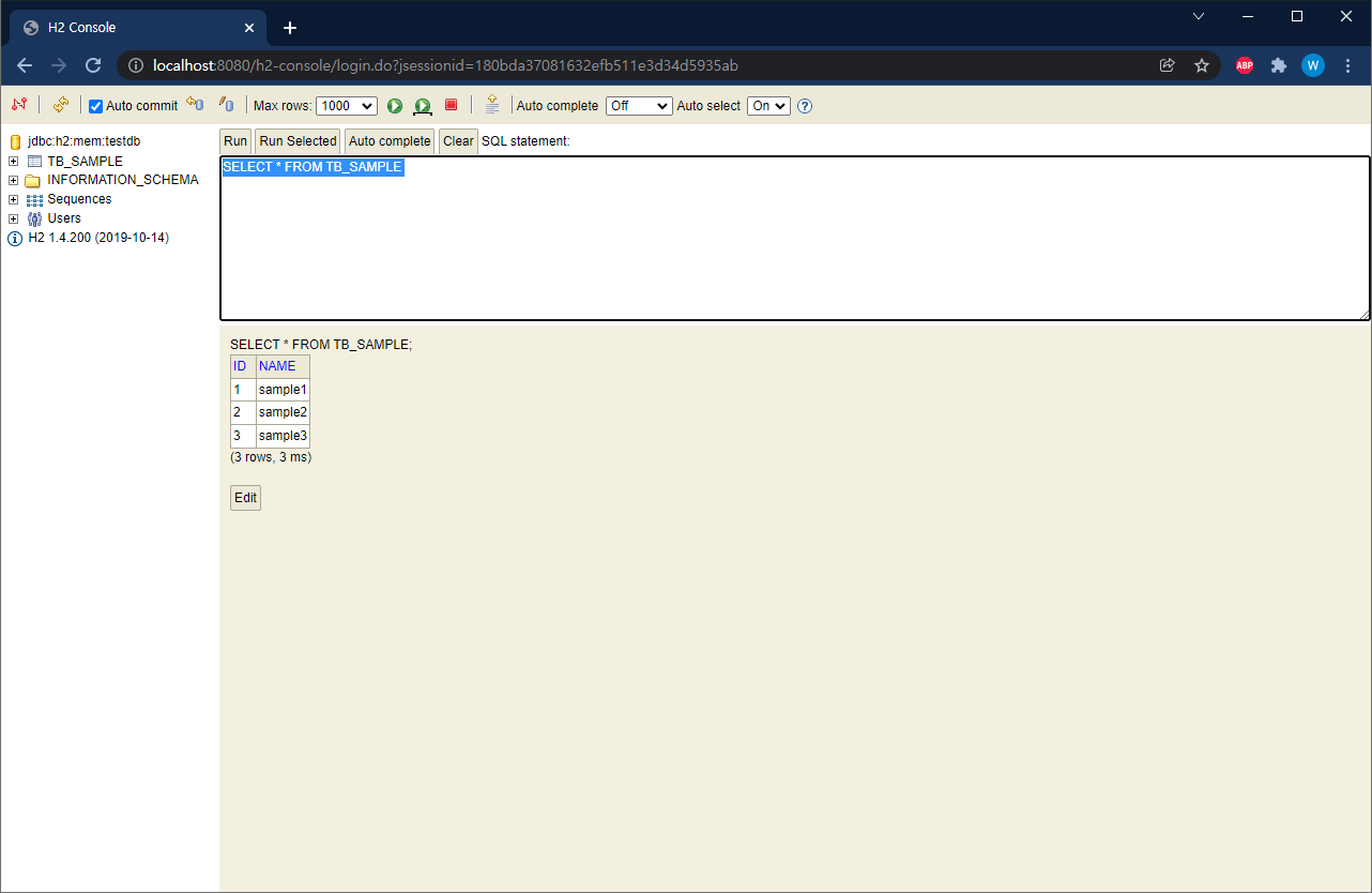 SELECT * FROM tb_sample