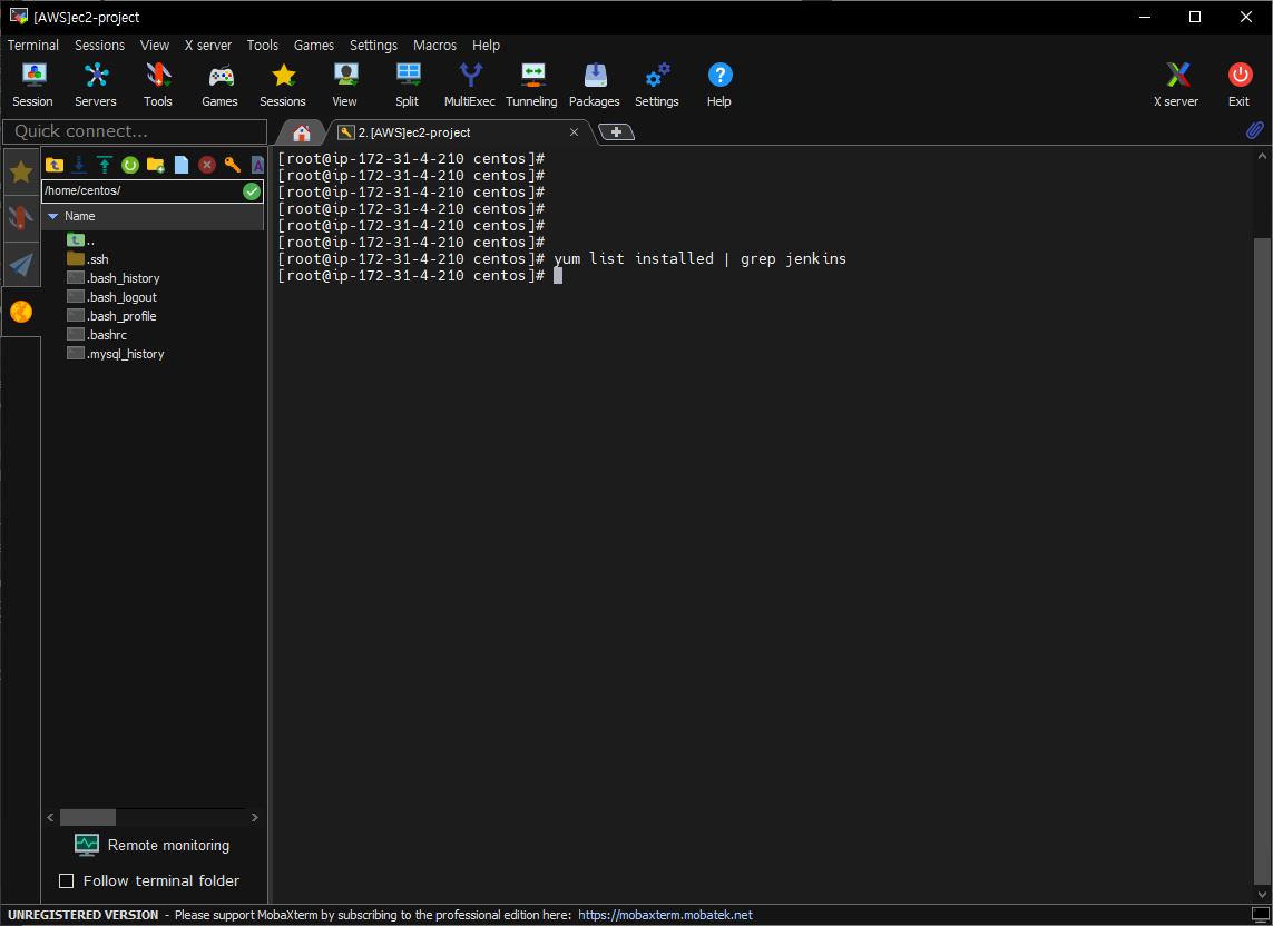 ● Centos7에 Jenkins 설치 1. .Jenkins가 설치 되어 있는 지 확인 명령어 =====> yum list installed | grep jenkins 2. Jenkins 설치파일을 저장소에 다운로드 명령어 =====> wget -O /etc/yum.repos.d/jenkins.repo https://pkg.jenkins.io/redhat-stable/jenkins.repo ##만약 bash: wget: command not found 문구가 나오면 아래 명령어를 입력 명령어 =====> yum install -y wget ##만약 wget 명령어 사용 시 아래와 같은 문구가 나오면 다음 명령어 입력ERROR: cannot verify pkg.jenkins.io's certificate,..